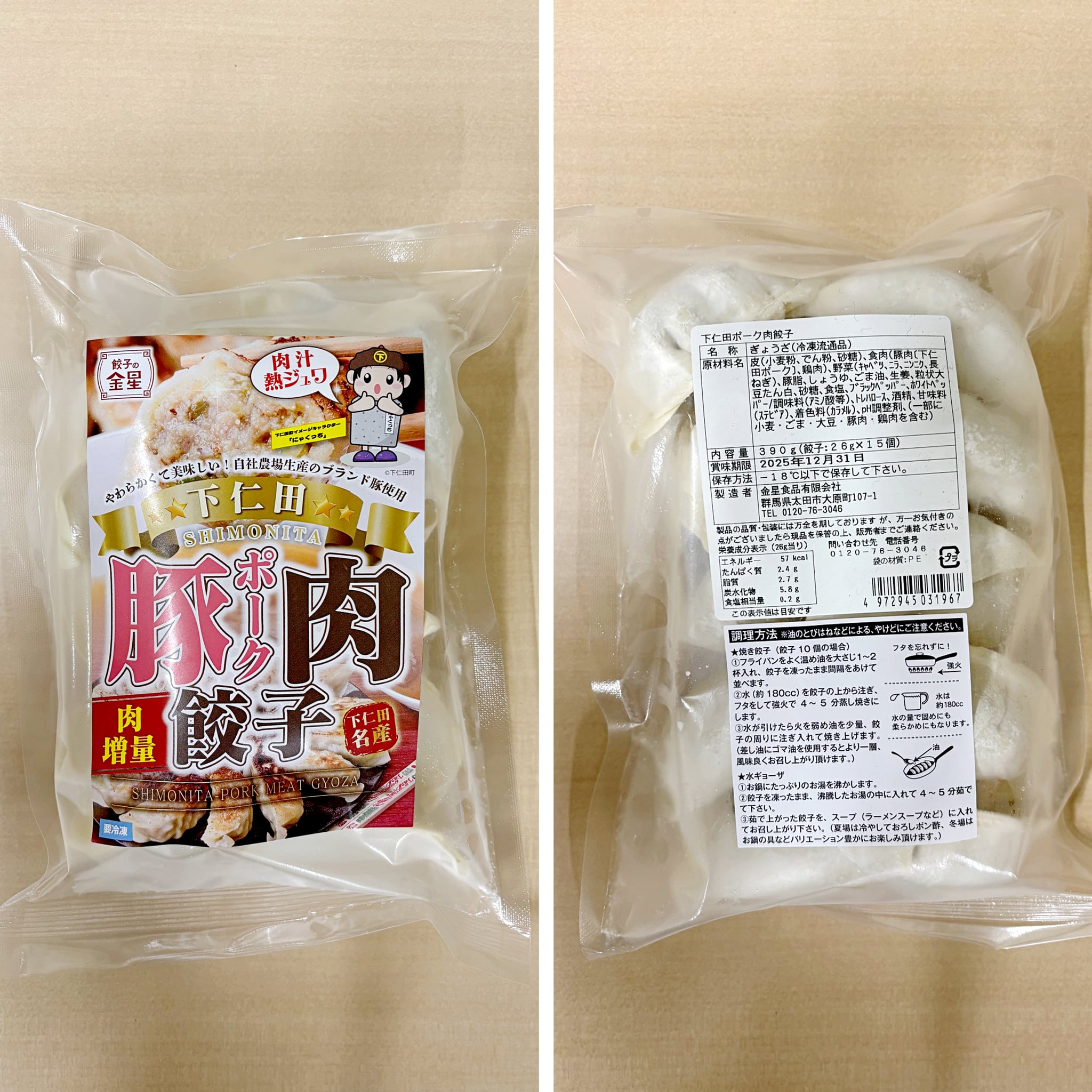 通常の「特撰生餃子」が1粒18gに対し、下仁田ポーク肉餃子は1粒28gの大きめサイズ。