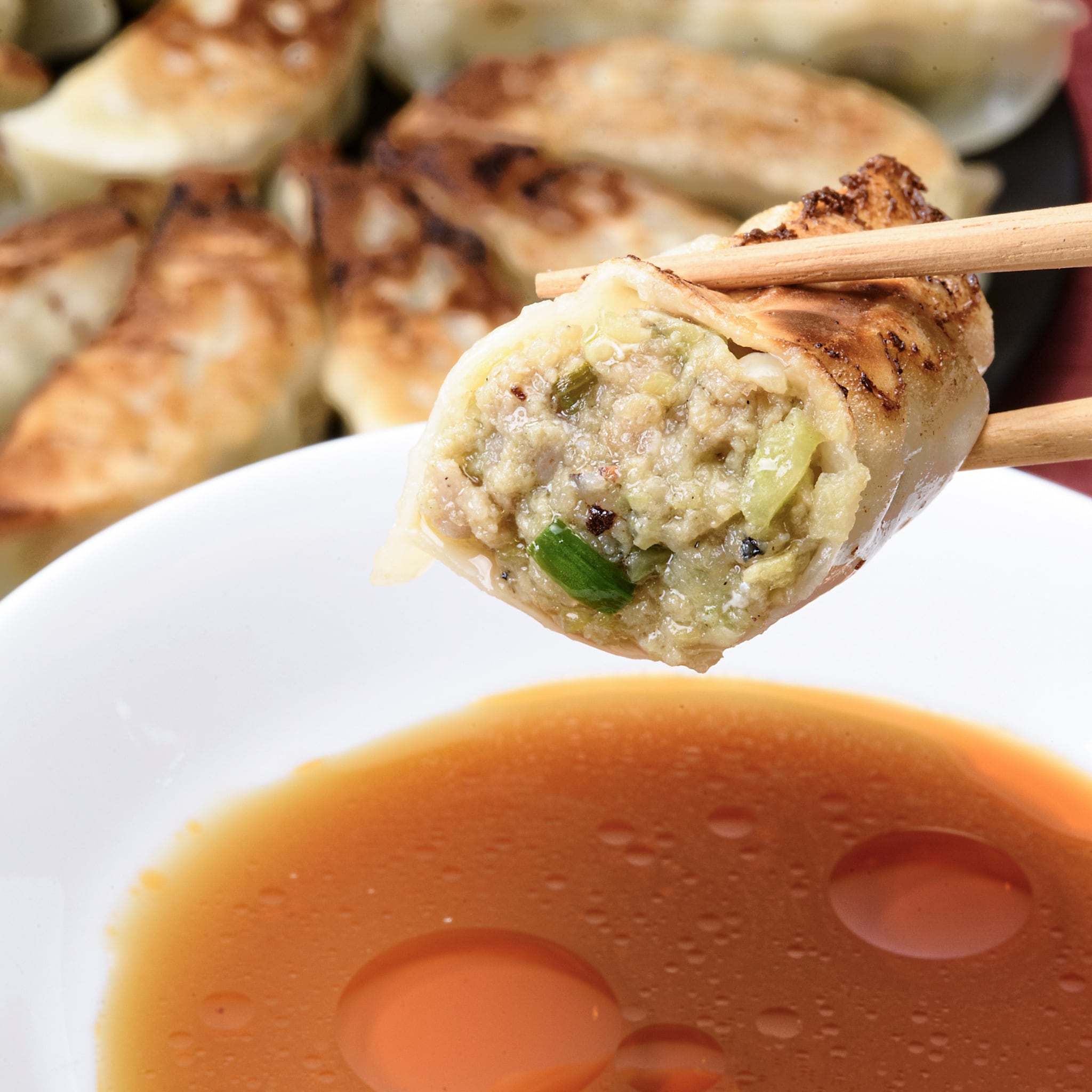 国産キャベツ・ニラ・長ねぎ・生姜などの野菜をバランスよく配合し、もちっとした皮に閉じ込めました。