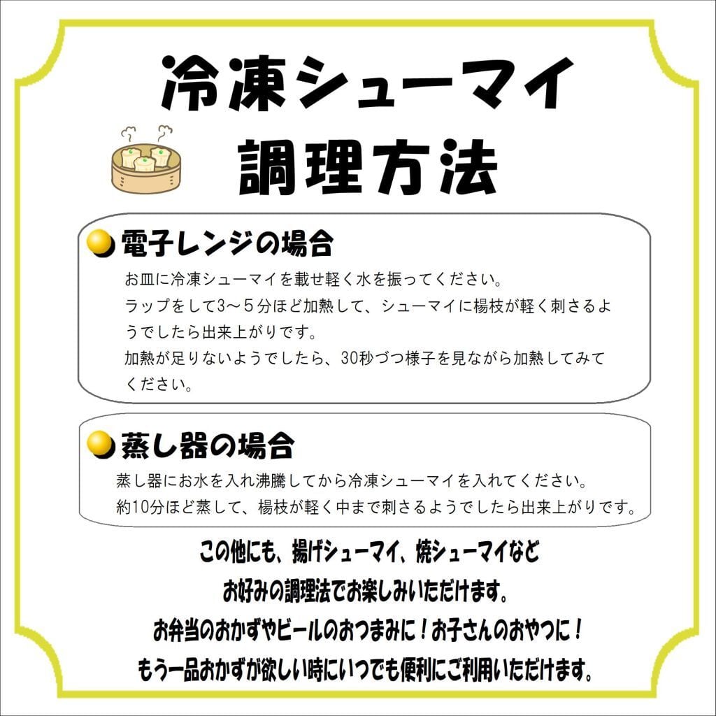 〇蒸し器の場合、蒸し器にお水を入れ沸騰してから冷凍シューマイを入れてください。約10分ほど蒸して、楊枝が軽く中まで刺さるようでしたら出来上がりです。