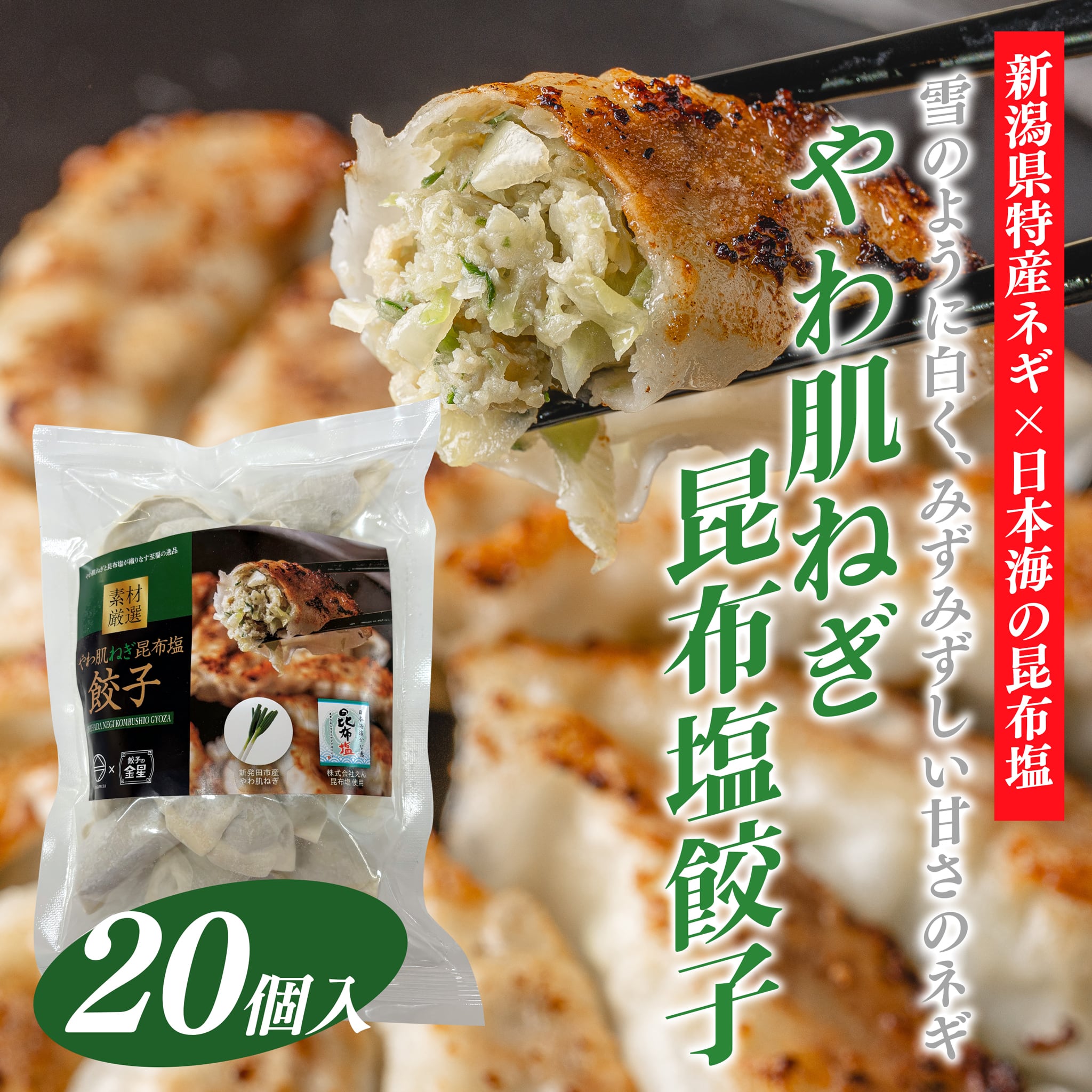 【新潟県特産ネギ×日本海の昆布塩】雪のように白く、みずみずしい甘さ やわ肌ねぎ昆布塩餃子 20個入り【冷凍】