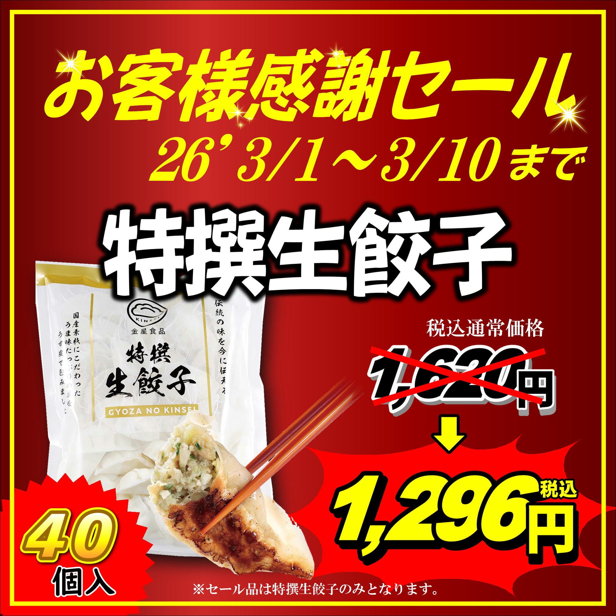 ※感謝セールと通常価格との特撰生餃子の品質に違いはございません。