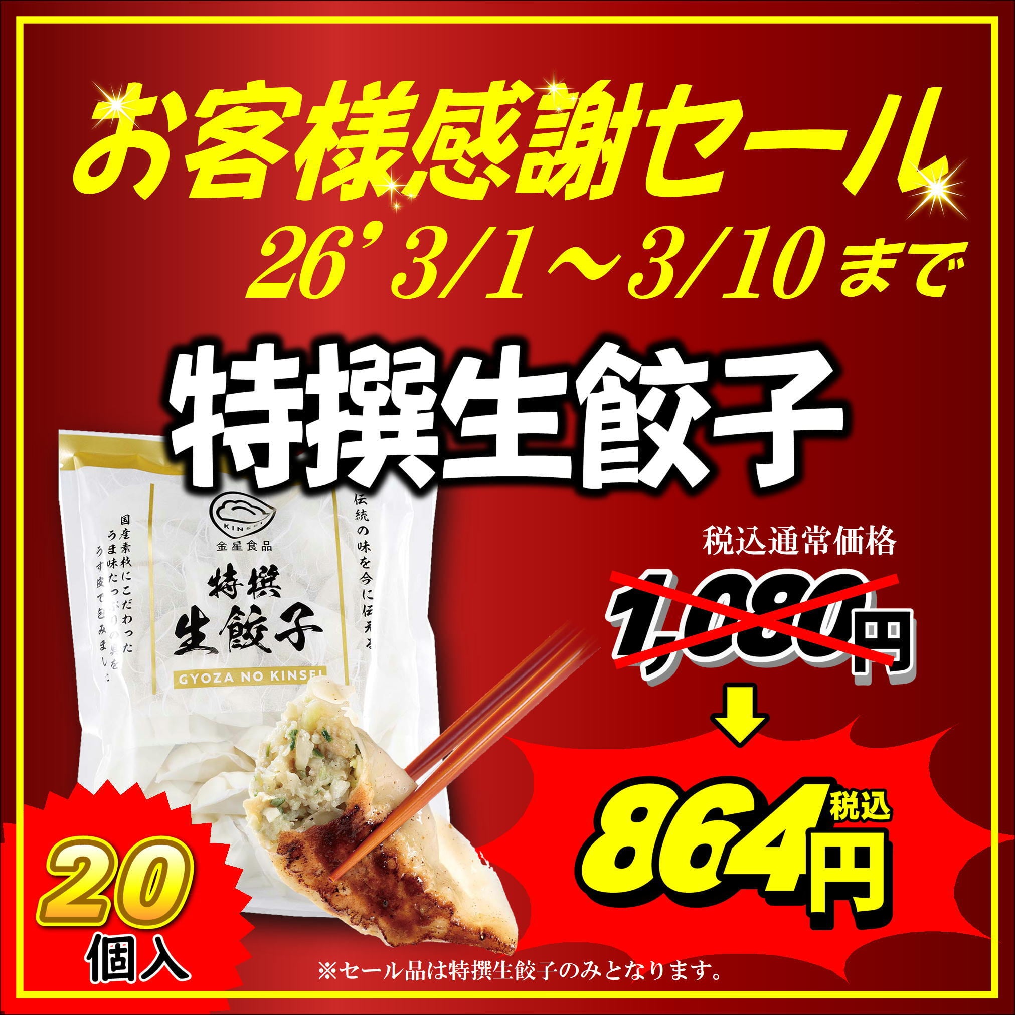 ※感謝セールと通常価格との特撰生餃子の品質に違いはございません。
